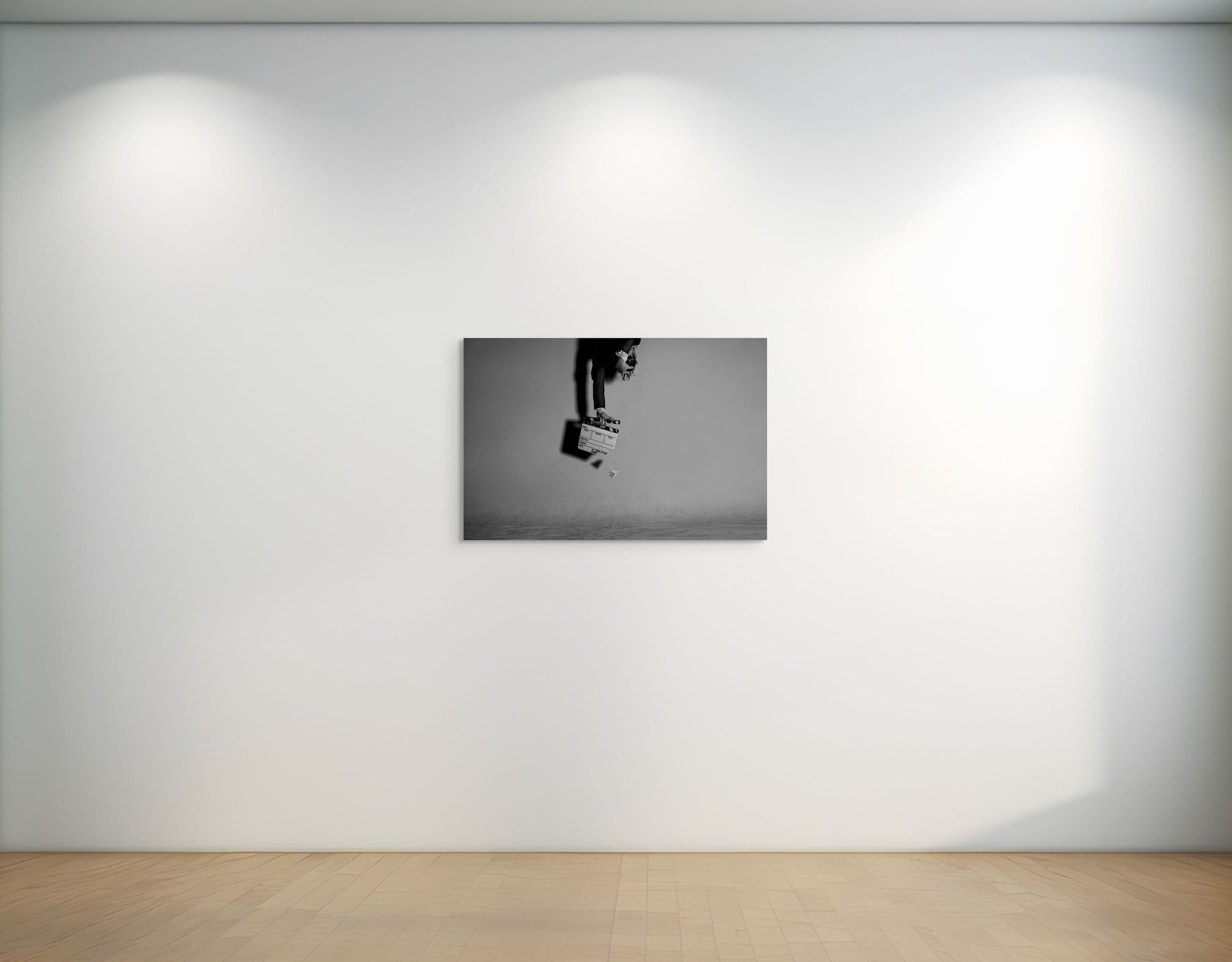 This image began with the question of what remains when the words disappear. The upside-down figure reflects an industry unsettled, caught in the pause of the Writer’s Strike. The cracked slate and the falling “MOS” tab mark a scene still moving but stripped of dialogue, rhythm, and voice. The dirty floor is the abandoned residue of sets, stories, and the people who once filled them. In the end, the photograph becomes about the things we don’t say – and what happens when no one is left to say them.