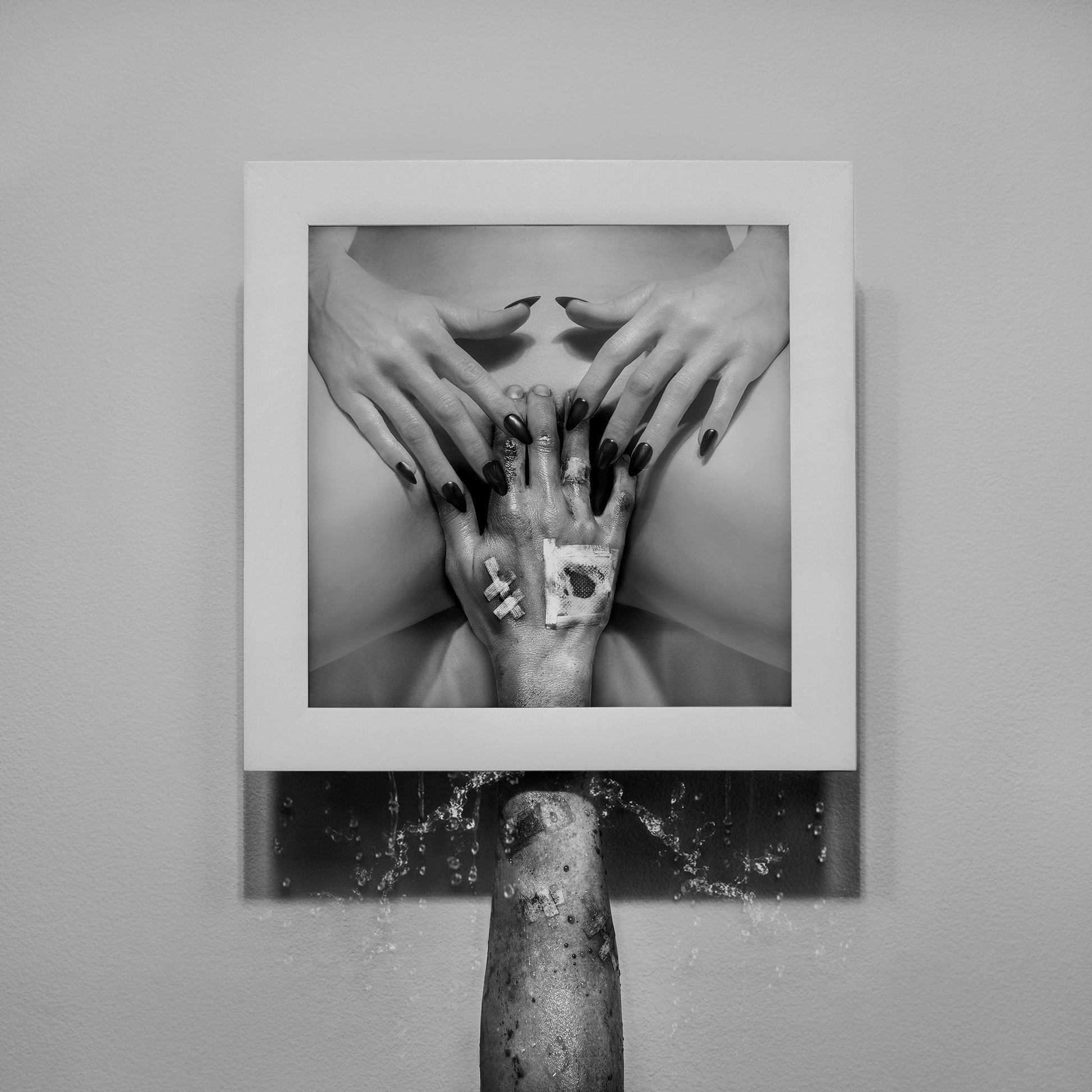 Inspired by the idea if art begged to be hung on the wall. The bruised hand got its wounds from the wall it built around one's heart, covering the most vulnerable place. The She in She Said is the artwork. And She begs to hung. To be seen, cared for. In doing so, the wounded hand will lower and life will begin.