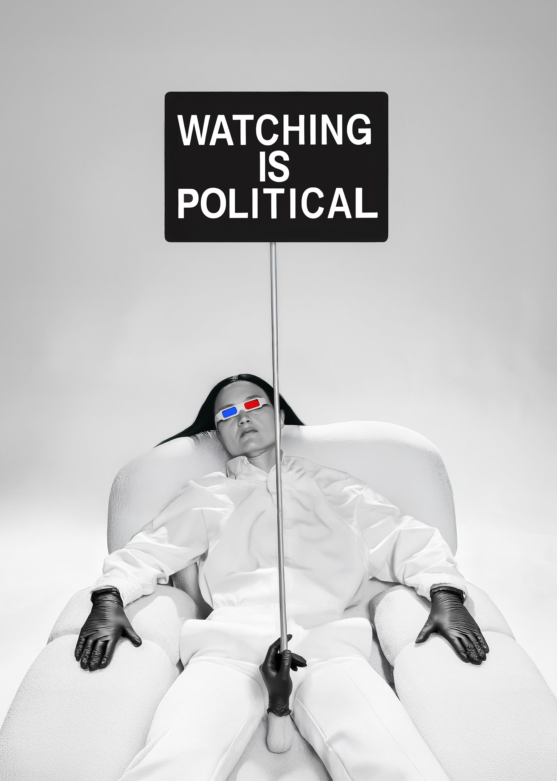 This image began with the simple act of watching, the posture we enter when we surrender ourselves to the screen. The soft chair becomes a container for comfort, the kind that lets a story think in our place.